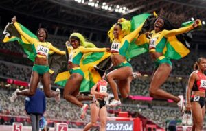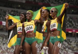Roneisha McGregor, Janieve Russell, Shericka Jackson and Candice McLeod teamed up to grab bronze for Jamaica in yesterday’s Tokyo 2020 Women’s 4×400 metres final