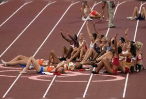 A five-minute burst of action near the backstretch of the Olympic track served up the perfect snapshot of what is going right, and all that is going wrong, for the US track and field team in Tokyo