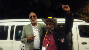 John Andalcio in company with legendary American athlete, John Carlos, at the World Junior Championships in Cali, Colombia