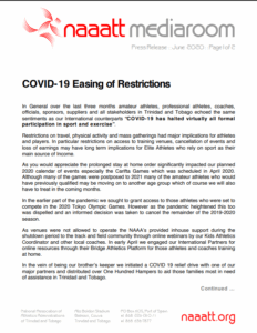 In General over the last three months amateur athletes, professional athletes, coaches, officials, sponsors, suppliers and all stakeholders in Trinidad and Tobago echoed the same sentiments as our International counterparts “COVID-19 has halted virtually all formal participation in sport and exercise”.